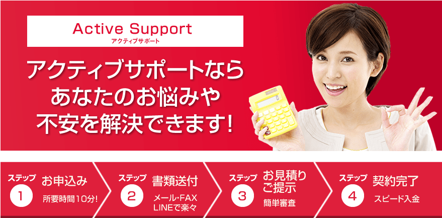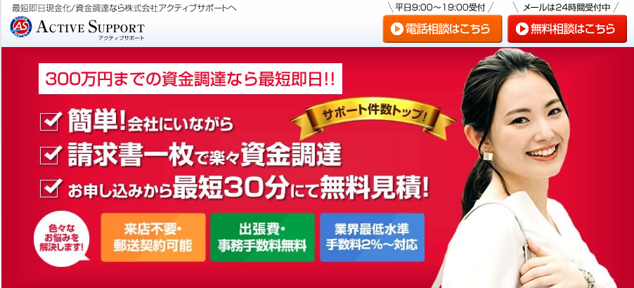 アクティブサポートでは、状況に応じて300万円まで最短即日での資金調達相談にも対応しています。