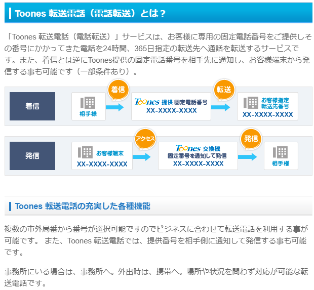 電話転送サービスToonesの特徴