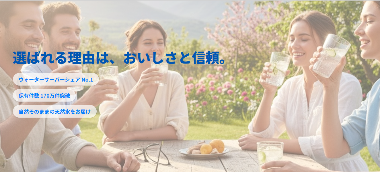 おいしい天然水を手軽に楽しめるウォーターサーバーサービスです。